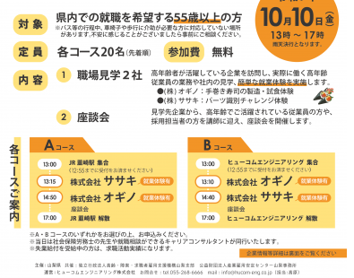 【山梨県】10/10職場見学バスツアー 55歳以上