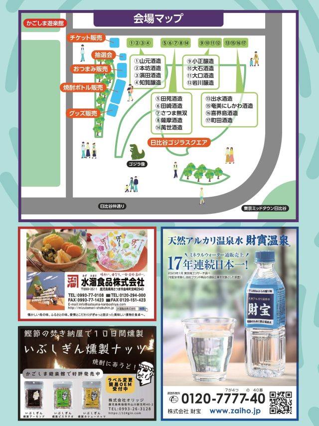 ちょい飲み3杯:500円で楽しめるコーナーから出品商品の販売、鹿児島県のアンテナショップの前で鹿児島県関連商品も販売します。
