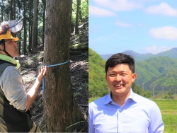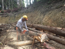南条郡森林組合の職員と一緒に、実際の現場を見学・体験します。