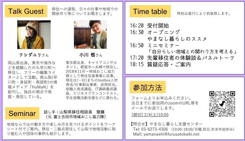 今回のやまなし暮らしセミナーは「地域とかかわりながら暮らす・働く」にフォーカス!
