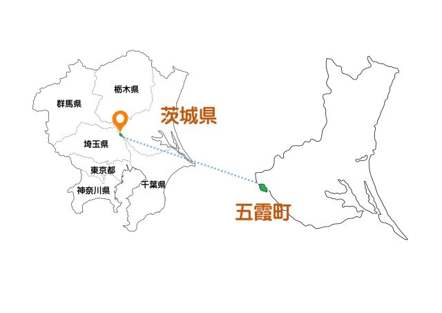 茨城県五霞町(ごかまち)は、埼玉県と千葉県に隣接し、東京から50km圏内にあります。