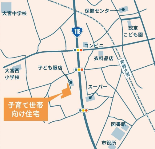 常陸大宮市では、住みたいと思える魅力あるまちづくりを進めるとともに、移住・定住を希望される子育て世帯の方のための賃貸式戸建て住宅「グランデ・ファミーユ 1st.stage」の整備を進めています。