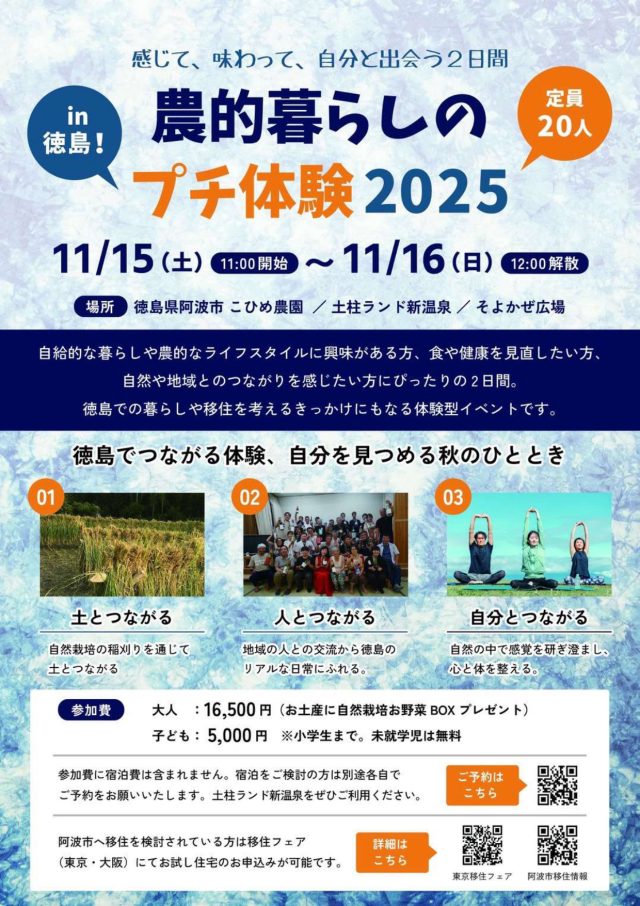 11/15(土)-16(日)「農的暮しのプチ体験2025」in徳島