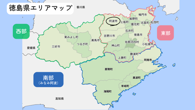 徳島県阿波市は、市街地の東部と山あいの西部との中間に位置するまち。