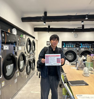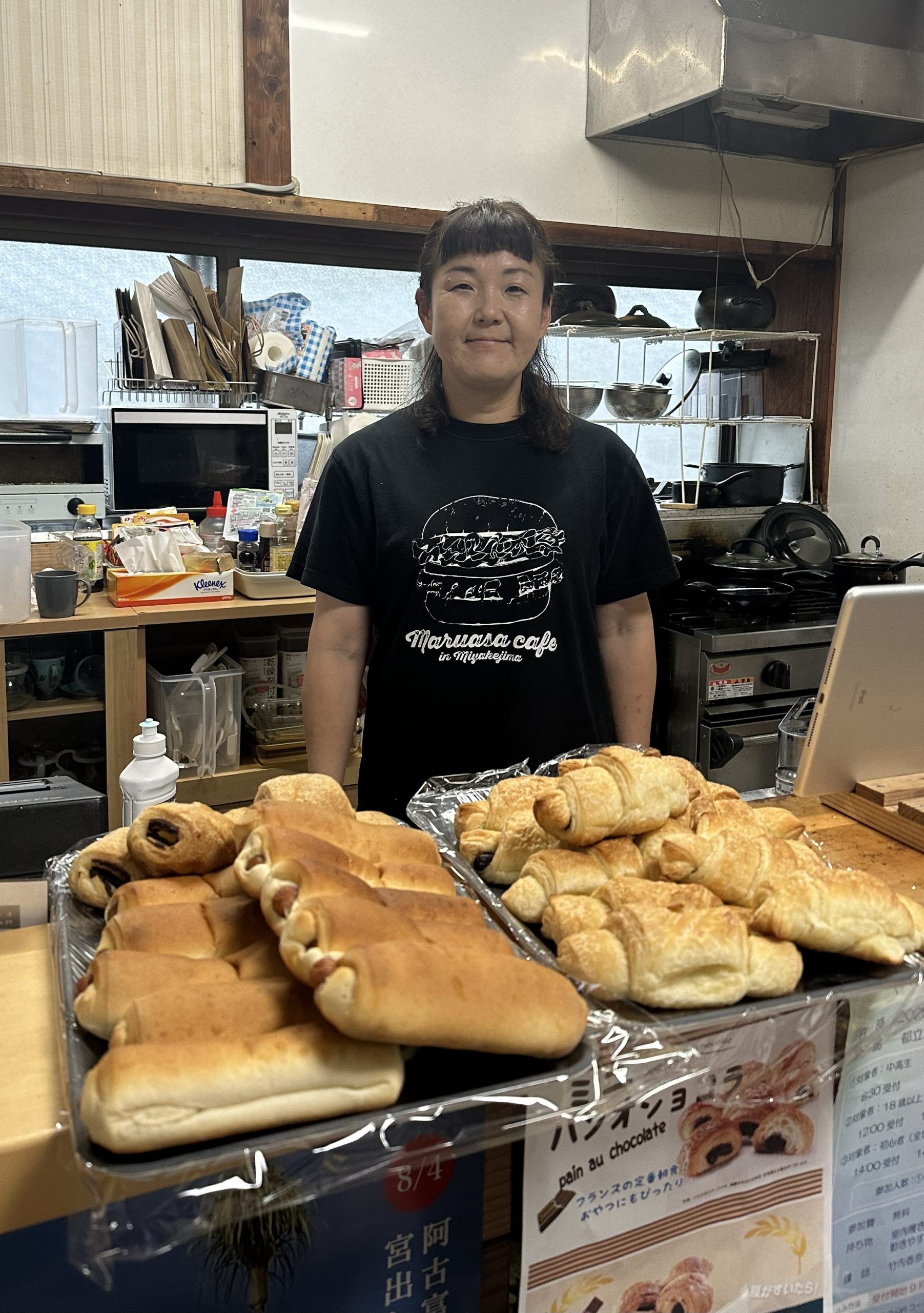 (左)マルアサカフェのオーナー浅沼里沙さん。カフェの隣にあるコインランドリー(上右)も島にあったらいいなという発想から導入。布団が洗える大型や中型の新しいマシンが並んでいます。その横にはリサイクル品も。あったらいいながある三宅島です!おいしそうなお手製パンを前に島で生まれて島で育ち、今子育て真っ最中の里沙さんが云う三宅島は「コミュニティがちょうどいい」。人口が約2200人、高齢化率も高い島ながら、自分に合ったコミュニティを選べるとのこと。それだけコニュニティが数多くあるそう。人と人との距離感がちょうどいい、とにっこり微笑む笑顔にみんなも笑顔でうなずいていました😊カフェ、ランドリー、公文、子ども食堂と同じく三宅島出身のご主人と活躍されています。(里沙さんのマルアサバーガー明日葉ソース絶品でした~‼)