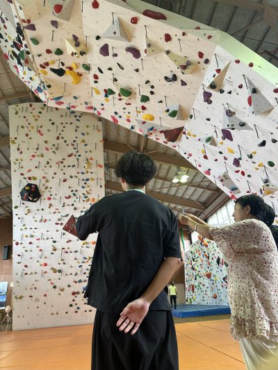 (左)国内最大の公営ボルダリング施設。体育館の天井の高さまであるロープクライミングでは子供たちが果敢にチャレンジ!