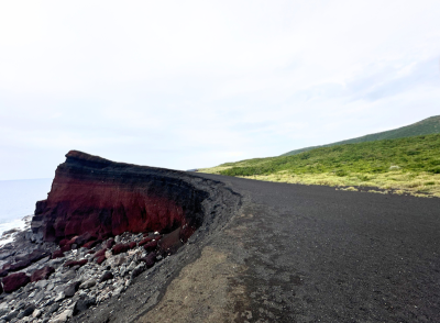 🚙ジオスポットへ。曇天の空も似合う三宅島。長い噴火の歴史によりできた雄大な自然美。回復力の高さも感じます。